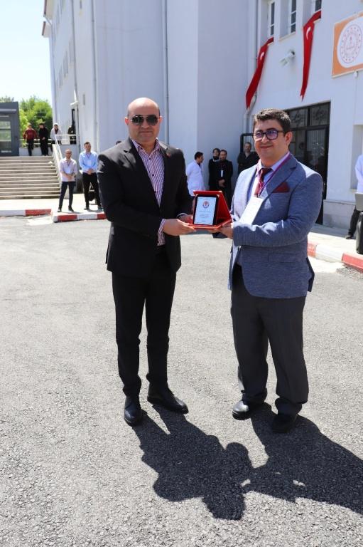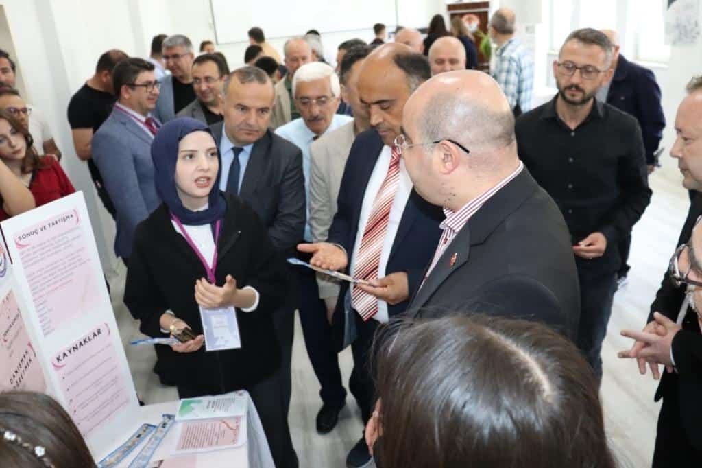 Kaymakam BASKIN, öğrencilerin hazırladığı projeleri tek tek inceleyerek genç mucitlerden bilgi aldı, bilimsel düşünceyi destekleyen bu çalışmaların önemine değindi.